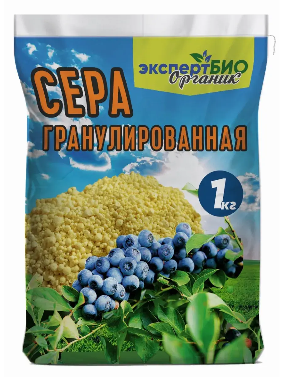 Сера улучшает использование растениями азота и фосфора,участвует в образовании хлорофилла, в азотном углеродном обмене веществ, в процессах дыхания и синтезе жиров, повышает устойчивость к засухе и болезням.Она усиливает рост и развитие растений.Дефицит же серы на 40 % снижает не только фотосинтез, но и урожайность.Сера чаще всего бывает гранулированной или порошковой форме.Сера гранулированная используется для подкисления почвы при выращивании растений, которые любят кислую почву, таких, например, как рододендроны, голубика, черника, брусника, хвойные, азалия и других, а так же для обработки (дезинфекции) погребов, теплиц перед высадкой растений. Гранулированная сера для голубики как и костная мука благотворно влияет на биологические и химические процессы, происходящие в почве.Сера, как удобрение — незаменимый участник фотосинтеза и дыхательных процессов растений. Способ применения: Для подкисления почвы необходимо вносить серу из расчета 50 грамм на 1 м2 грунта путем заделывания на глубину 10-15 см.Для обработки теплицы необходимо из расчета 100 грамм на 5 м3 помещения высыпать гранулы серы в металлическую емкость и поджечь. Во время обработки окна и двери должны быть плотно закрыты. Проветрить помещение можно не раньше, чем через 24 часа после обработки.Подкормка для голубики благотворно влияет на биологические процессы, происходящие в почве в саду или огороде. В садоводстве повышает устойчивость кустов высокорослой голубики к болезням и вредителям, усиливает устойчивость саженцев голубики к низким и высоким температурам, помогает растениям противостоять засухе. Всё это позволяет увеличить урожай голубики. Меры предосторожности: Не вдыхать. Избегать попадания в глаза и на кожу.Необходимо использовать спец. одежду и индивидуальные средства защиты. При попадании в глаза – промыть большим количеством воды, при попадании на кожу – смыть водой с мылом.Хранение: В хорошо проветриваемом, сухом, затемненном, недоступным для детей и животных месте, при t от -30˚С до +30˚С