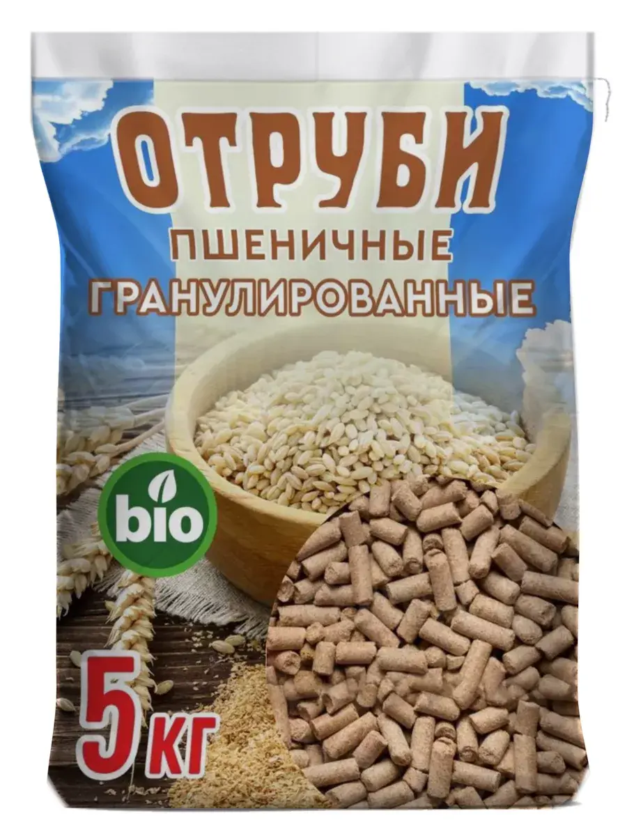 Отруби – побочный продукт переработки зерна на муку и крупу. В состав корма входят перетертые зерновые оболочки, остатки зародышей, мельничная пыль.При производстве высококачественной пшеничной муки доля побочных продуктов может достигать 28%.Корм богат клетчаткой, отличается витаминной и минеральной питательностью. Отруби-хороший корм для свиней, коров, быков, скармливать их можно в любом количестве, но надо учитывать, что отруби обладают послабляющим действием.Скармливают их в виде густой каши, применяют и как подсыпку к грубому корму, корнеплодам.Отруби можно дрожжевать. В отрубях содержится много клетчатки и сырого протеина. Комбикорм и отруби скармливают кроликам так же, как дробленое зерно.Пшеничные отруби дают главным образом кроликам на откорме. Кроме того отруби-непременный ингредиент для кормов для откорма уток, гусей, кур, идейки и других домашних птиц. Преимущества: 1) Высокая энергетическая ценность. 2) Значительный уровень протеина. 3) Корм богат клетчаткой. 4) Витаминная питательность 5) Минеральная питательность. 6) Повышение уровня устойчивости животных к заболеваниям. 7) Корм используют для профилактики ожирения животных. 8) Улучшение темпов роста молодняка, возрастание эффективности откорма. 9) Повышение качества продукции животноводства. 10) Нормализация работы ЖКТ. 11) Абсорбция токсических веществ. 12) Стоимость отрубей ниже, чем зерновых кормов. Нормы скармливания. Лошади.В виде болтушки.До 50% от энергетической питательности зерновых кормов рациона. Свиньи.В виде болтушки. Молодняку – до 10% рациона по энергетической питательности, взрослым животным – до 1 кг/гол. в сут. Птица.В кормлении взрослых кур –до 10% от массы рациона, индеек – до 15%, уток и гусей – до 25%. Отруби хранят в мешках или контейнерах в крытых помещениях с хорошей вентиляцией. Требуется защита корма от осадков, желательная температура воздуха – 20 °С, относительная влажность воздуха – до 70%. Срок хранения рассыпных отрубей – не более 1 месяца, гранулированных – до 1 года.