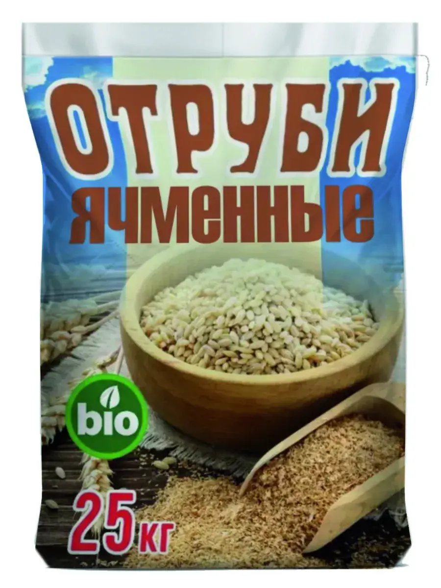 Отруби ячменные - это очень ценная пищевая добавка для кормления сельскохозяйственных животных, поэтому всегда входит в состав комбикормов. Животные могут потреблять отруби в виде пойла или как месиво. В состав отрубей входят: сырая клетчатка,сырой протеин, кальций, магний, витамины из категории "B". Ячменные отруби один из видов отрубей, который содержит максимальное количество растительных волокон . Отруби-хороший корм для свиней, коров, быков, скармливать их можно в любом количестве, но надо учитывать, что отруби обладают послабляющим действием. Скармливают их в виде густой каши, применяют и как подсыпку к грубому корму,корнеплодам. Отруби можно дрожжевать. Кроме того отруби-непременный ингредиент для кормов для откорма уток, гусей, кур, идейки и других домашних птиц. Отруби –побочный продукт переработки зерна на муку и крупу. В состав корма входят перетертые зерновые оболочки. Нормы Для крупного рогатого скота рекомендуется 4-6 кг отрубей на особь в сутки. Даются они в составе жидких кормов или в замесе с соломенной сечкой и в составе комбикормов. Корм положительно влияет на молочную продуктивность. Свиньи хуже усваивают отруби, что уменьшает их пользу, поэтому их процентное соотношение в рационе значительно меньше. Так, для молодых поросят это значение составляет порядка 10-15%, особям постарше (4- 8 месяцев) содержание можно увеличить до 20-30%, а взрослым свиньям – до 35%. Птица. Используют в составе комбикормов или мешанок. В кормлении молодняка (куры – с 8-недельного, утки, гуси – 4-недельного возраста) – до 5% от энергетической питательности рациона. В кормлении взрослых кур – до 10% от массы рациона, индеек – до 15%, уток и гусей –до 25%. Введение в рацион отрубей повышает яйценоскость и качество яиц, ускоряет уровень метаболизма. Желательно использование корма в период линьки. Маленьким кроликам до 3-х месяцев дают по 15-25 г отрубей в сутки, беременным самкам – до 60 г, а кормящим – до 100 г в сутки. Лошадям в корм можно давать только пшеничные отруби.